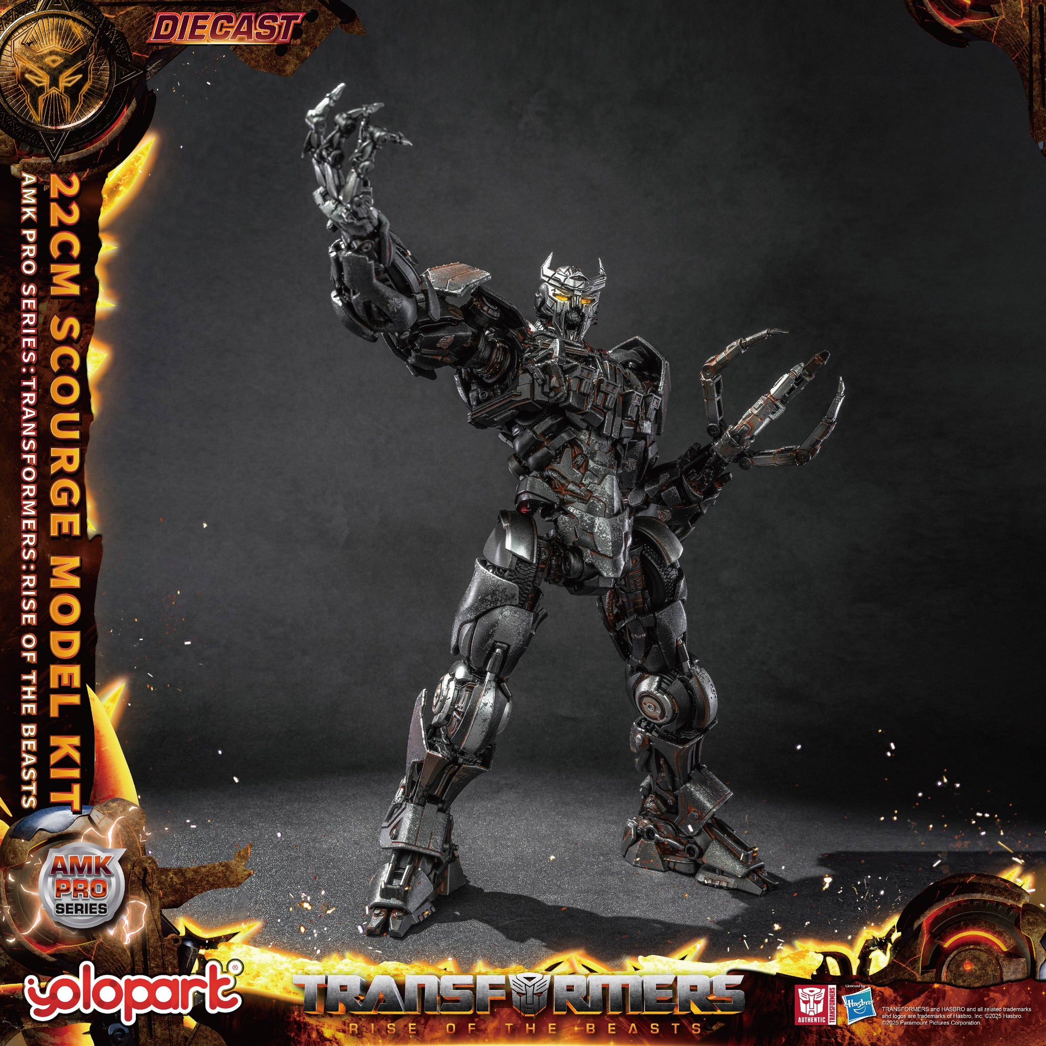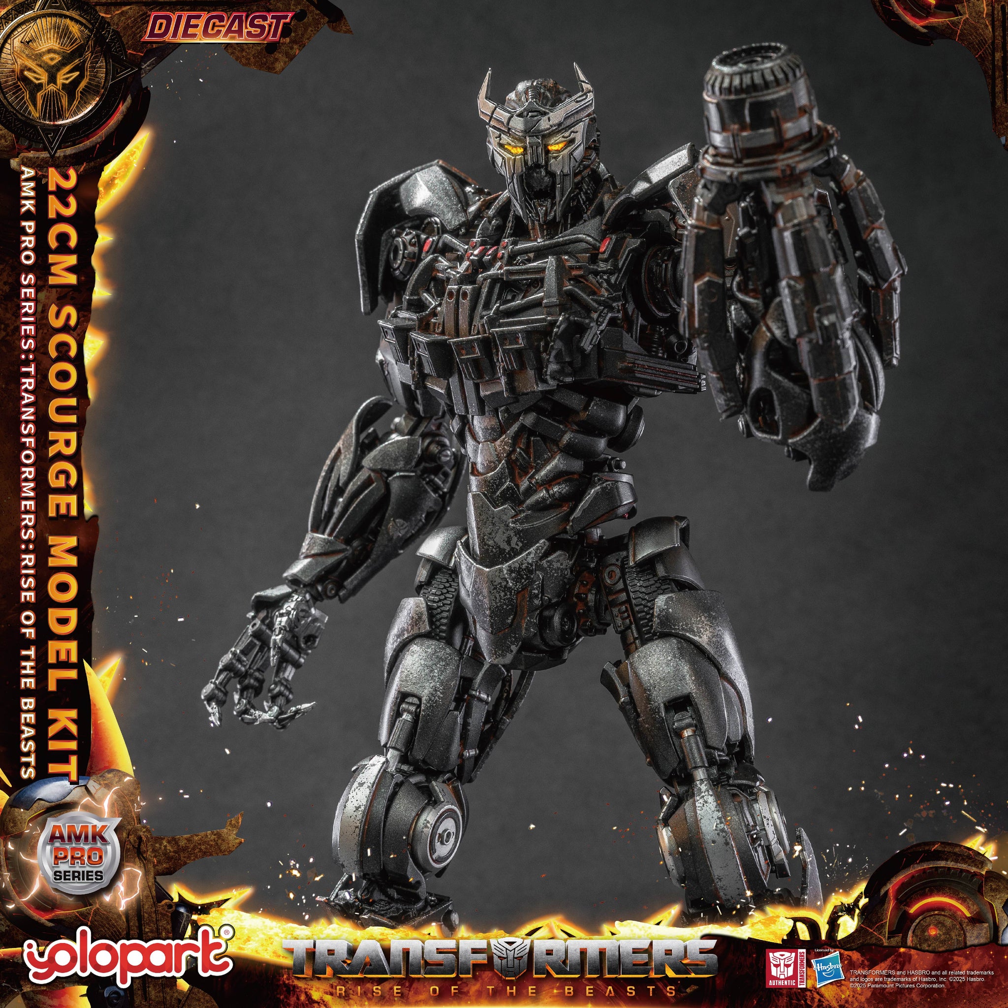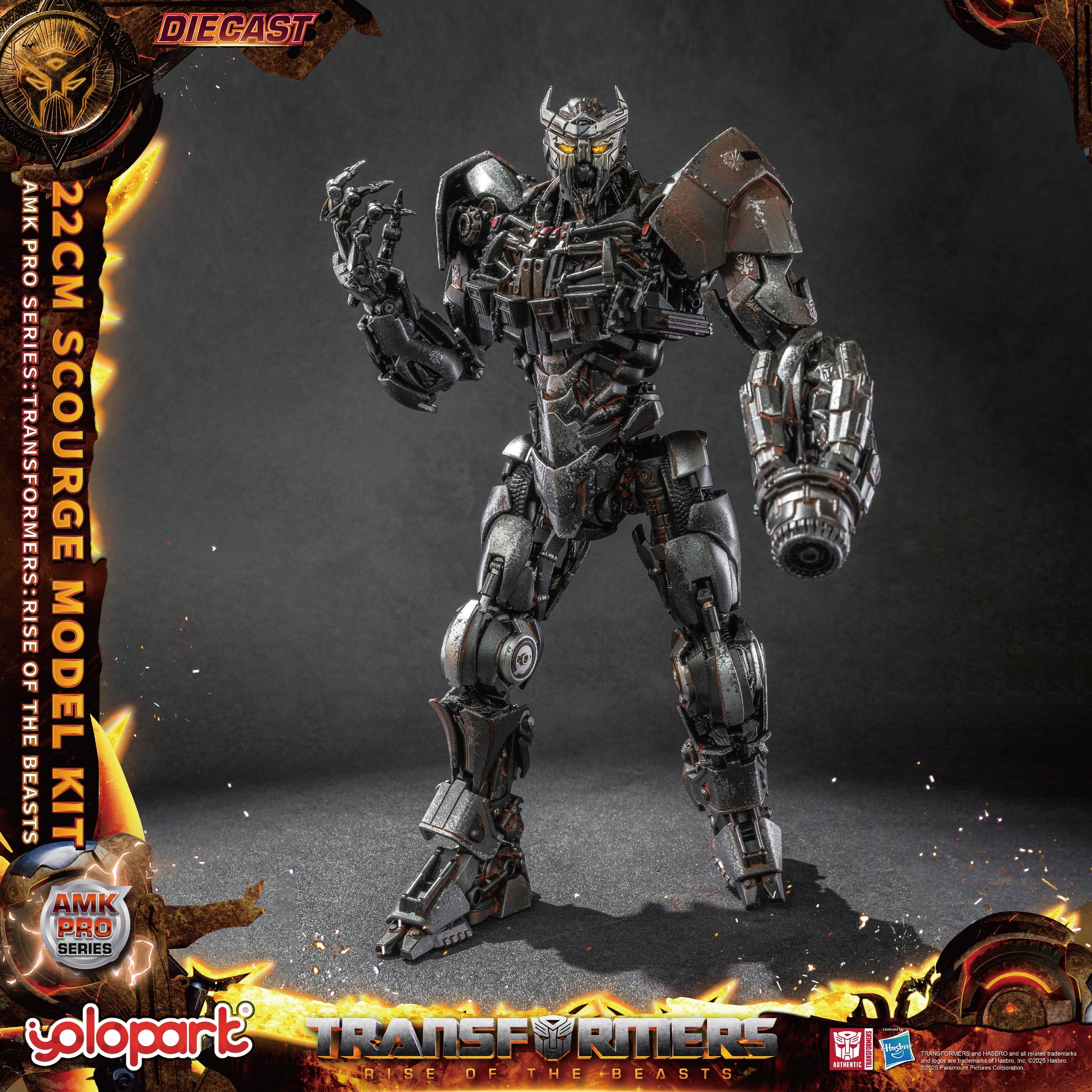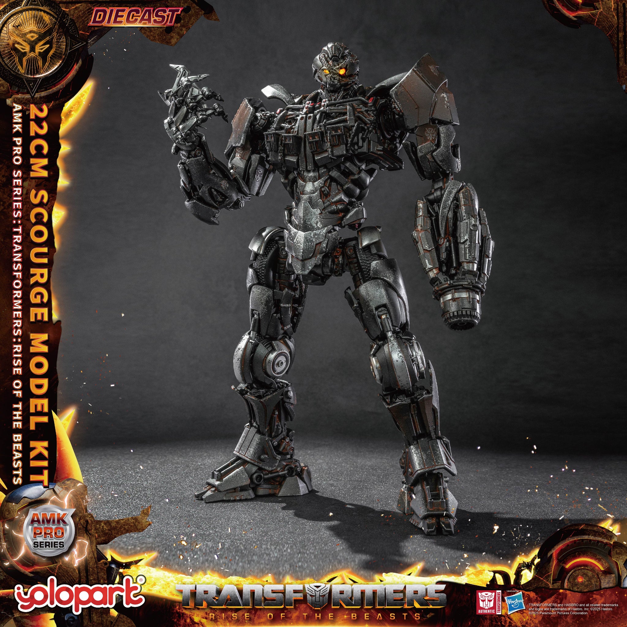 【Product Highlights】 - First in the AMK PRO series to feature a die-cast inner frame, with additional die-cast exterior armor. - New pre-assembled design, with independent frame and armor components for enhanced build quality. - Highly detailed model that accurately replicates the movie version of Scourge. - Detailed metallic paint finish and weathering effects for added realism. - Eyes and dual hand cannons equipped with magnetic-controlled LED light effects.