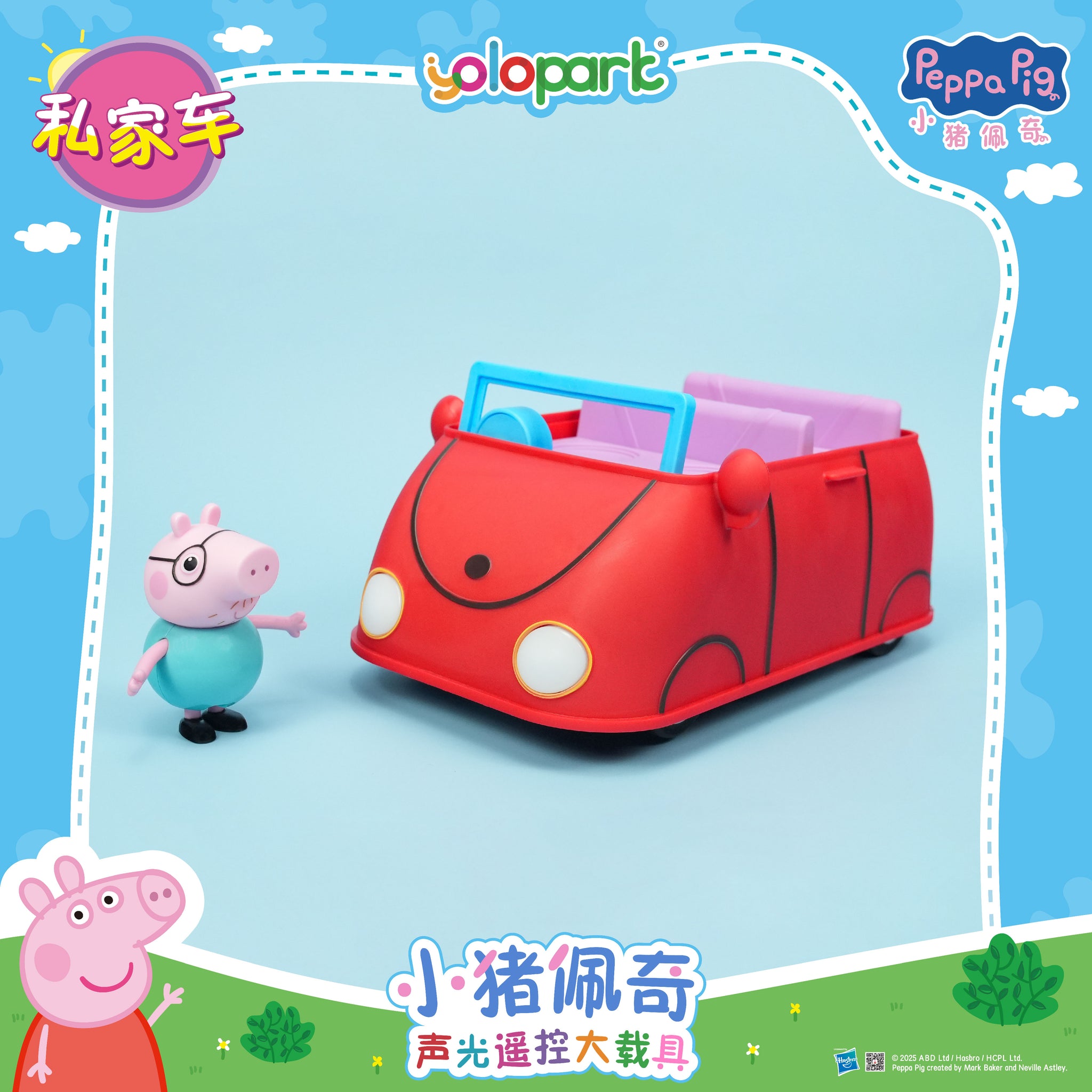 π The first Light & Sound RC vehicle with figure-Family Car! are you ready? Daddy Pig is leaving! π The wheels are agile, making it easy to move forward, backward, and turn π π΅ Accompanied by animation soundtrack music and soft lighting, play cute and fun! π Wireless remote-control operation, exercise baby's hand eye coordination and spatial orientation One car, two playthings, paired with Peppa's cute dolls Embark on a journey of joyful driving imagination for your beloved! π½ Peppa Pig's large Light & Sound RC vehicle with figure-Family Car π Now Available You can go to Tmall to search YOLOPARK Peppa Pig to buy~